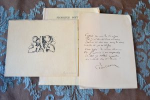 Lebreau (Jean) - Florilège poétique. Blainville sur mer, L'amitié par le livre, s.d.. In12, broché, 78 pp. Dessins de Martin Viviés ex. n°7 signé par l'auteur sur pur fil Lafuma contenant un portrait du poète et un original des dessins de...