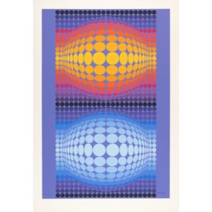 Victor VASARELY (1906-1997) Entis Sérigraphie Signée et numérotée FV 15 Infimes enlèvements en surface, très légers plis dans la marge supérieure Silkscreen print, signed and numbered FV 15. Tiny lacks, very slight folds in the top margin Sujet : 95 x 64 cm ; Feuillet : 106 x 73 cm - Image : 37,41 x 25,2 in. ; Sheet : 41,74 x 28,75 in. Expert : Sylvie Collignon