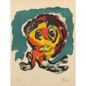 Karel APPEL (1921-2006) Ubu junior Lithographie en couleurs Signée et numérotée 32/75 Quelques traces de plis. Légèrement jaunie Lithograph in colors, signed and numbered 32/75. Some traces of fold. Slightly yellowed Sujet : 51 x 46cm ; Feuillet : 65 x 49cm - 25,6 x 19,3 in. Expert : Sylvie Collignon