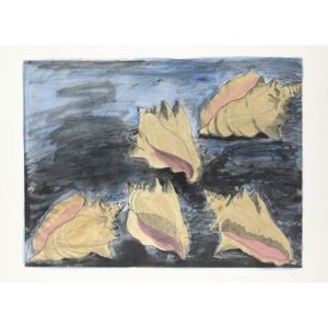 JIM DINE (Né en 1935) Five schells, 1982 Eau-forte et aquatinte avec rehauts de couleurs sur vélin Signée, datée et annotée A/P. En dehors de l'édition à 50 exemplaires Etching and aquatint with color highlights on vellum Signed, dated and annotated A/P. Apart from the edition of 50 copies Sujet : 58 x 77 CM ; Feuillet : 75 x 93 CM - Image: 22 7/8 x 30 1/4 IN ; Sheet: 29 1/2 x 36 5/8 IN Expert : Sylvie Collignon