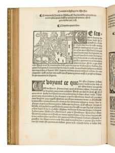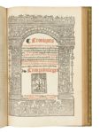 [Philippe de COMMINES]. Cronique & hystoire… contenant les choses advenues durant le regne du Roy Loys Unziesme tant en France Bourgõgne Flandres Arthois Angleterre que Espaigne et lieux circonvoisins. Nouvellemenr reveue et corrigee Avec plusieurs notables mis en marge… – Philippe de COMMINES. Croniques du Roy Charles huytiesme de ce nõ que Dieu absoille cõtenãt la Verite des faictz et gestes dignes de mémoire dudict seigneur quil feist en son voiage de Naples et de la conqueste dudit royaulme de Naples ク pays adiacens Et de son triumphãt et Victorieux retour en son royaume de Frãce… Paris et Poitiers, Enguillebert de Marnef, 25 septembre 1528. 2 ouvrages en un volume in-folio, maroquin taupe, fin encadrement quadrilobé formé d’un filet doré serti de deux filets à froid avec fleurons d’angle, au centre large motif doré losangé aux petits fers, dos à 6 nerfs orné, dentelle intérieure, tranches dorées ( Capé). Bechtel, 159/C-446 / 160/C-454 // Brunet, II-189-190 // Tchemerzine-Scheler, II-452-455 // USTC, 39054 et 8405. I. (4f.)-CVI / A4, B-S6, T4 / II. (4f.)-LX / aa4, A-K6 / 44 et 43 longues lignes, car. goth. / 176 x 261 mm. Troisième édition de la Cronique et histoire… de Loys Unziesme et première édition des Chroniques du Roy Charles huytiesme. Philippe de Commines, grand homme d’État aux côtés de Louis XI, avait rédigé ses mémoires en deux parties. La première qu’il composa de 1490 à 1493 est entièrement consacrée à la vie politique sous Louis XI et constitue les livres I à VI. Les livres VII et VIII qu’il rédigea de 1495 à 1498 sont consacrés à la première expédition en Italie où il avait suivi le roi Charles VIII et où il s’illustra courageusement auprès de lui à la bataille de Fornoue. Ses mémoires s’achèvent par la mort du roi en 1498. Ses chroniques rencontrèrent immédiatement un vif succès parce qu’elles sont impartiales, qu’elles sont l’information précise d’un témoin oculaire [et que] le souci d’expliquer le réel l’a amené à faire œuvre aussi de moraliste et de politique, usant fréquemment de la digression, donnant un portrait pessimiste des princes et des hommes, fixant, avant Machiavel, les règles de la réussite politique ( En français dans le texte, n° 38). Les six premiers livres connurent deux éditions publiées en 1524, le 26 avril et le 7 septembre, puis trois éditions furent publiées en 1525, l’une en janvier, l’autre le 15 février et celle que nous présentons le 11 septembre. Il faut en réalité regarder cette dernière comme la véritable troisième édition, l’année à l’époque commençant au mois de mars, les mois de janvier et février étant donc placés après le mois de septembre. Ce n’est que trente ans plus tard, après un édit de Charles IX daté de 1562, que l’année débuta au 1er janvier. L’illustration se compose, pour le premier ouvrage, d’un encadrement de titre semblable à celui de l’édition originale de 1524, de la même figure au verso représentant les armes de France soutenues par deux anges et de la marque de l’imprimeur au dernier feuillet; pour le second volume d’un grand et beau titre illustré de style architectural montrant des scènes agricoles ou de chasse, avec marque de l’imprimeur, d’un grand bois armorié au feuillet aa4 et de 7 bois dans le texte dont un répété, ainsi que de lettrines. Bel exemplaire réglé joliment relié par Capé. Petits frottements sans gravité à la reliure. Titre du premier volume un peu coupé dans la partie supérieure.