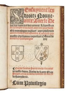 Guillaume COQUILLART. Sensuyuent les droitz Nouveaulx avec le Debat des dames et des armes …