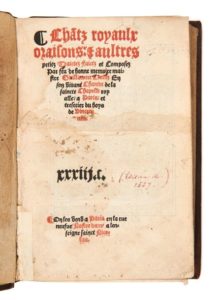 Guillaume CRÉTIN. Chãtz royaulx, oraisons : & aultres petitz Traictez… Petit in-4, basane …