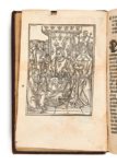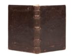 Guillaume CRÉTIN. Chãtz royaulx, oraisons : & aultres petitz Traictez… Petit in-4, basane tête-de-nègre estampée à froid avec décor à froid dans le genre Du Seuil, dos 3 doubles nerfs orné à froid ( Reliure de l’époque restaurée). Bechtel, 198/C-895 // Brunet, II-421 // De Backer, I-190 // Ruble, 137 // USTC, 73218. (4f.)-CXXXV-(1f.) / a4, A-H4, I8, K-P4, Q8, R-X4, AA-LL4 / 33 lignes, car. goth. / 122 x 184 mm. Seconde édition de ce recueil de textes poétiques composés à la demande de François Ier. Guillaume Crétin, poète de Cour, débuta sa carrière comme ecclésiastique. Il fut tout d’abord trésorier puis chanoine de la Sainte-Chapelle à Paris. Il devint ensuite historiographe de François Ier et rédigea à sa demande ses Chants royaux, recueil de tous ses poèmes dans lequel on trouve, pêle-mêle, des ballades, des oraisons, des complaintes, de nombreuses épîtres à Charles VIII, à Louis XII, au duc de Valois, à François Ier…, et également un débat des deux dames sur le passetemps des chiens & oyseaux, un plaidoye de lamant doloreux, une invective contre les gens darmes francoys… À l’aise aussi dans l’épître et l’épigramme, Guillaume Crétin influença Lemaire de Belges et même C. Marot […] il manifestait, comme beaucoup d’autres dans son siècle, un grand idéalisme de la vertu (Bechtel) mais fut tourné en ridicule par Rabelais sous le nom de Romina Grobis dans son Pantagruel. Trois éditions de ces Chants royaux furent publiées, dont une datée 1527 chez Galliot Du Pré. La nôtre comportant des corrections par rapport au texte de 1527 doit être considérée comme la seconde ou la troisième en dépit des notices de Brunet, De Backer et Ruble. Titre en rouge et noir, grand bois au verso avec l’auteur offrant son livre à François Ier et marque de l’imprimeur au dernier feuillet. La reliure a fait anciennement l’objet de restaurations et peut-être de modifications. L’exemplaire a dû être lavé sans trop d’excès, des traces de mouillures subsistent à plusieurs pages et l’exemplaire a été replacé dans sa reliure dont nous ne pouvons affirmer que c’est celle d’origine. Mouillures au titre et à plusieurs feuillets, réparation au titre avec petit manque de papier.