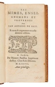 Jean-Antoine de BAÏF. Les Mimes, enseignemens et proverbes… In-12, maroquin rouge, triple …