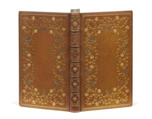 François DAIX. Polydore, ou Le Printemps des amours. In-12, maroquin citron joliment orné sur les plats d’une large guirlande florale avec fleurettes mosaïquées de maroquin bleu et blanc en encadrement, dos à 5 nerfs avec rappel du décor, dentelle intérieure, tranches dorées sur marbrure ( Thibaron). Drujon, II-1143 / Cioranescu, II-23153. 6 f.-119 f.-(4 f. sur 5, le dernier probablement blanc manquant ici) / A-K12, L10 / 76 x 139 mm. Édition originale dans laquelle l’auteur célèbre les charmes de sa maîtresse Polydore. François Daix, avocat au parlement et jurisconsulte de Marseille à la fin du XVIe et du début du XVIIe, était également poète. L’ouvrage est dédié à Guillaume Du Vair alors président de la Cour de Justice à Marseille et premier président du Parlement de Provence. Il est composé de nombreuses pièces de poésie: sonnets, odes, chansons, stances, plaintes, élégies, etc., la plupart en français et quelques unes en latin. Ravissant exemplaire finement relié par Thibaron. Une restauration au titre. Provenance: Étienne-Marie Bancel (ex-libris, 8 mai 1882, n° 356) et Robert Hoe (ex-libris, IV, 11 novembre 1912, n° 872).
