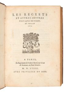 Joachim DU BELLAY. [Œuvres diverses]. 13 ouvrages reliés en un volume in-4, veau marron, filet …