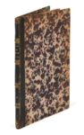 Jean de LA TAILLE. Le Blason des pierres precieuses contenant leurs vertuz & proprietez. Plaquette petit in-4, demi-basane noire, dos à 4 nerfs orné ( Reliure du XIXe siècle). Brunet, III-869 // Cioranescu, 12701. 18 f.-(2 f.) / A-E4 / 130 x 188 mm. Édition originale. Né à Bondaroy vers 1540, Jean de La Taille se destinait à la magistrature avant de s’enthousiasmer pour la poésie à la lecture de Ronsard et Du Bellay. Il mourut vers 1608, laissant derrière lui divers ouvrages de poésie, de théâtre et d’histoire. L’ouvrage se compose d’une première partie en prose, imprimée en caractères ronds, dans laquelle l’auteur décrit toutes les pierres précieuses (couleur, aspect, dureté, etc.), ainsi que leurs vertus supposées: c’est un cas merveilleux […] qu’aujourd’huy la plus part de France ne fait cas des pierres précieuses […] sans qu’on les daigne admirer pour les vertus excellentes que Dieu pour notre usage leur a départies… Cette première partie est suivie de poèmes sur le même thème et d’épigrammes diverses, imprimés en italiques. Le Blason des pierres précieuses parut deux fois chez Lucas Breyer en 1574, une fois à la suite de La Géomance abrégée avec un titre propre, l’autre fois dans cette édition séparée. Celle-ci est illustrée de deux bois in fine l’un représentant l’auteur et l’autre ses armes: un lion avec sa devise In utrun[m] que paratus. Fente en pied d’un mors. Titre plus court de 3 mm dans la marge latérale. Provenance: Anatole Basseville (ex-libris).