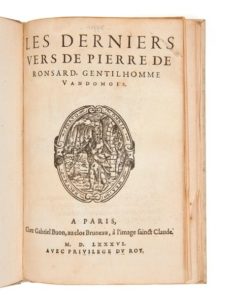 Pierre de RONSARD. Les Derniers vers de Pierre de Ronsard, gentilhomme Vendomois. Plaquette in-4, …