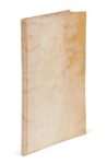 Pierre de RONSARD. Les Derniers vers de Pierre de Ronsard, gentilhomme Vendomois. Plaquette in-4, bradel vélin ( Reliure du XIXe siècle). Tchemerzine-Scheler, V-455. 13 / A-B4 (le dernier blanc) / 144 x 215 mm. Édition originale publiée par Claude Binet. Exemplaire de second tirage avec la page 14 vierge et contenant une épître de Claude Binet intitulée A la noble et vertueuse compagnie qui a honore les obseques de Monsieur de Ronsard, Prince des Poëtes François. Marque de Buon sur le titre et portrait de Ronsard au verso du titre. Exemplaire dans lequel on a relié une dizaine de feuillets blancs pour épaissir la reliure. Reliure voilée, feuillets un peu brunis.