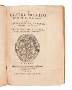 Pierre de RONSARD. Les Quatre premiers livre (sic) de la franciade Au Roy Tres-chrestien, Charles …