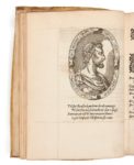 Pierre de RONSARD. Les Quatre premiers livre (sic) de la franciade Au Roy Tres-chrestien, Charles neufieme de ce nom. In-4, vélin doré avec écoinçons et fleuron central, dos lisse avec 4 faux nerfs soulignés par une roulette dorée et fleurons de même, tranches dorées ( Reliure de l’époque). Barbier, MBP, II-52 // Brunet, IV-1383 // Tchemerzine-Scheler, V-450. (14 f.)-229-(1 f. blanc) / a4, e4, i4, o2, A-Z4 / Aa-Ff4 / 162 x 220 mm. Édition originale de ce poème commencé en 1561 à la demande de Henri II, qui ne fut jamais achevé. Cette édition contient une épître au lecteur, en prose, sur 9 pages, qui ne sera pas reprise dans les éditions postérieures. Deux portraits gravés sur bois représentent Ronsard et Charles IX, marque de l’imprimeur sur le titre. Barbier-Mueller recense plusieurs états. Notre exemplaire correspond en tous points au tirage B. Bel exemplaire réglé. Le vélin est un peu sali et taché avec un manque à un coin, une coupure et une annotation manuscrite au premier plat. Il n’en garde pas moins l’irrésistible charme du passé. Une petite tache brune à un feuillet.