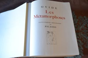 Ovide & Picasso (Pablo) - Genéve Edito Service s.d. (vers 1970), In4 en feuilles, sous double emboitage,couv. à rabats. 394 pp.. Illustré de 30 eaux-fortes de Picasso. fac similé de l'édition de 1931. un des ex. sur papier vergé fin blanc des...