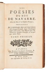 THIBAULT de CHAMPAGNE, roi de Navarre. Les Poësies du Roy de Navarre, Avec des Notes & un …