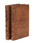 THIBAULT de CHAMPAGNE, roi de Navarre. Les Poësies du Roy de Navarre, Avec des Notes & un Glossaire François ; précédées de l’histoire des révolutions de la Langue Françoise… 2 volumes in-8, veau brun, filet à froid en encadrement, dos à 5 nerfs ornés de fers à la toile d’araignée dorée ( Reliure de l'époque). Brunet, V-815 // De Backer, 123. I. XXIII-(1 f. sur 2, le dernier blanc manquant ici)-262 / a8, b6 A-Q8, R4 (le dernier blanc) // II. (2 f.)-XVI-330 / [ ]2, a8, A-S8, T7, V8, X4, Y2 / 120 x 161 mm. Édition originale. Thibaut IV, comte de Champagne, naquit en 1201, quatre jours après le décès de son père, et fut élevé à la cour de Philippe-Auguste où il jouit d’une éducation soignée. Premier vassal de la couronne de France par sa position et l’importance de ses états, il accompagna Louis VIII dans ses campagnes contre les Anglais puis les Albigeois, avant de quitter le service du roi au bout des quarante jours obligatoires de service. La couronne de Navarre lui échut en 1234, à la mort de son oncle, avant qu’il ne conduisît en 1239 la Croisade des barons en Terre Sainte. Il mourut en 1253, laissant plus de quatre-vingts chansons composées à différents moments de sa vie. Quatorze sont des discussions amoureuses sous le nom de Jeux partis et dix sont des cantiques à la Vierge. La majorité des autres sont des chants d’amour. C’est Lévêque de La Ravallière qui en donna, en 1742, la première édition. Il y adjoint des recherches et des réflexions utiles sur les origines de la langue française, ainsi qu’un glossaire et 13 pages de musique notée. L’édition est, en outre, illustrée de 7 gravures sur cuivre, dont 3 hors-texte, l’une par Dheulland, les autres non signées. Bel exemplaire malgré quelques restaurations anciennes et une coiffe arrachée.