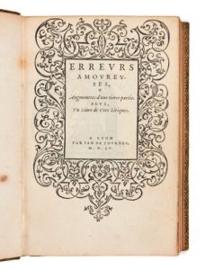[Pontus de THYARD]. Erreurs amoureuses, Augmentees d’une tierce partie. Plus Un livre de Vers …