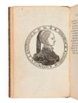 [Pontus de THYARD]. Erreurs amoureuses, Augmentees d’une tierce partie. Plus Un livre de Vers Liriques. In-8, maroquin olive, triple filet, dos lisse joliment orné, tranches dorées ( Reliure du XVIIIe siècle). Barbier, II-171 // Brunet, V-853 // Cartier, Tournes, II-315 // Cioranescu, 21460 // Tchemerzine-Scheler, V-891. 169-(1 f.) / a-l8 (les 2 derniers blancs) / 100 x 159 mm. Quatrième édition en partie originale et première complète des Erreurs amoureuses. Ce recueil de sonnets et poésies adressés à une femme surnommée l’ Ombre de ma vie eut une forte influence sur les poètes de son temps et particulièrement Ronsard. Publiées pour la première fois en 1549 à Lyon chez Jean de Tournes, les Erreurs amoureuses connurent une suite en 1551 sous le titre Continuation des erreurs amoureuses. Deux nouvelles éditions suivirent en 1553 et 1554 jusqu’à l’édition de 1555, la nôtre, la première complète, augmentée d’une tierce partie et d’un Livre de vers liriques. Le titre est orné du bel encadrement arabesque en cul-de-lampe (Cartier, 93) et le verso du titre est illustré du portrait de la dédicataire entouré de la devise De ma vie l’ombre. On a relié in fine un fac-similé ancien d’un écrit de Thyard. Bel exemplaire en maroquin vert olive du XVIIIe siècle. Dos passé, exemplaire un peu court de marges en tête, annotations manuscrites anciennes sur une garde. Provenance: Adolphe Audenet (ex-libris arraché) et Prosper Blanchemain(ex-libris).