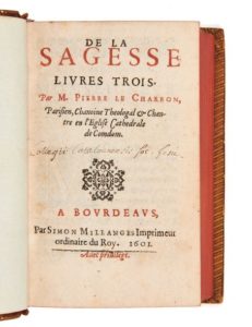 Pierre CHARRON. De la sagesse. Livres trois. In-8, veau blond, dos lisse joliment orné ( Reliure …