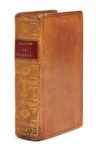 Pierre CHARRON. De la sagesse. Livres trois. In-8, veau blond, dos lisse joliment orné ( Reliure du XIXe siècle). Brunet, I-1810 // Cioranescu, 6436 // Tchemerzine-Scheler, II-253. (10f.)-772-(4f.) / ã8, ē2, A-Z8, Aa-Zz8, Aaa-Bbb8, Ccc4 / 93 x 159 mm. Édition originale de l’œuvre la plus importante de Pierre Charron. Né à Paris en 1541, Pierre Charron embrassa quelque temps la carrière du barreau avant d’étudier la théologie qui lui promettait une carrière plus lucrative. Son éloquence lui conquit rapidement une haute position dans le clergé et la reine Marguerite, épouse de Henri IV, le désigna pour son prédicateur. Il se lia d’une vive amitié avec Montaigne, dont il fut le disciple le plus éminent. Nonobstant son état de prélat, c’est dans son De la sagesse qu’il se livre tout entier et affiche un scepticisme qui lui attira la défiance de l’Église et particulièrement des Jésuites. Les instincts épicuriens de l’auteur se manifestent d’ailleurs à chaque page de ses écrits… Les sentiments qu’il exprime l’auraient fait monter sur un bûcher quelques siècles auparavant (Larousse). Il mourut en 1603. De la sagesse, bien qu’attaqué violemment par les théologiens dès sa parution, fut cependant réimprimé un grand nombre de fois. On y trouve une peinture remarquable des misères et faiblesses du genre humain, et un grand nombre de maximes et de conseils de vie. Cette édition originale renferme plusieurs passages supprimés ou corrigés dans l’édition donnée à Paris en 1604 peu après la mort de l’auteur. Petite tache brune en pied du dos. Provenance: Collegii Catalaunensis Soc. Jes. (ex-libris manuscrit sur le titre).