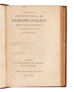 DIODORE de SICILE. Sept livres des histoires de Diodore sicilien nouvellement traduyts de grec en …