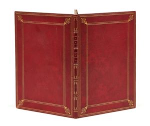 Étienne DOLET. Les Gestes de Francoys de Valois Roy de France. Dedans lequel Œuvre on peult congnoistre tout ce qui a este faict par les Francoys depuis Lan Mil cinq cents treize, iusques en Lan mil cinq cents trente neuf. Premierement composé en Latin par Estienne Dolet : et apres par luy mesmes translaté en langue Francoyse. In-4, maroquin rouge avec double encadrement de triple filet et fleurons d’angle, dos à 5 nerfs orné, roulette intérieure, tranches dorées ( Koehler). Brunet, II-797 // Cioranescu, 7917. 78-(1f.) / A-K4 / 142 x 211 mm. Édition originale rare. Typographe et humaniste français, Étienne Dolet (1509-1546) est une lumière et un martyr de la Renaissance. Fils naturel d’une Orléanaise et d’un père inconnu que l’on supposa un moment, à tort, être François Ier, Étienne Dolet vint à Paris à l’âge de douze ans où il fit ses études, se rendit ensuite en Italie en 1526 où il resta jusqu’en 1530, puis se rendit à Toulouse pour y étudier le droit. Il étudia alors les œuvres de Cicéron et s’enflamma dans la querelle des cicéroniens qui fut un mouvement en faveur du retour à la pureté de la langue de Cicéron. Il s’installa à Lyon en 1535, y fit imprimer son Commentariorum Linguae Latinae, puis obtint de François Ier le privilège de pouvoir imprimer pendant dix ans. Il publia de nombreux ouvrages en divers genres: théologie, littérature, médecine, et fut l’éditeur des œuvres de Marot et de Rabelais. Accusé d’imprimer des livres entachés d’hérésie, il fut incarcéré une première fois quinze mois à la Conciergerie de Paris et vit en 1543 treize de ses ouvrages condamnés aux flammes par le Parlement de Paris au motif qu’ils répandaient une damnable, pernicieuse et hérétique doctrine. Arrêté de nouveau à Lyon, il s’enfuit en Italie, revint à Lyon, publia une traduction de l’Asciochus de Platon dans laquelle ce dernier fait dire à Socrate: Après la mort tu ne seras rien du tout et fut déclaré, pour cette négation de l’immortalité de l’âme, atteint et convaincu d’être athée relaps. Condamné au bûcher, il fut exécuté le 3 août 1546 et brûlé avec ses livres. Ses Gestes de Francoys de Valois roy de France relatent l’histoire de François Ier depuis l’an 1513 jusqu’en 1530. L’ouvrage est à la gloire du roi et la relation du désastre de Pavie est aussi glorieuse pour lui que la victoire de Marignan: Le Roy… ne s’espargnoit aulcunement & se monstroit plein d’un cueur invincible. Mais finablement par une Destinee adverse, & fortune maulvaise, l’armee de France fut deffaicte, & le cheval du Roy occis soubs luy, & luy prins prisonnier en combattant magnanimement… Telle fut la volonte de Dieu… L’ouvrage fut d’abord rédigé en latin par Dolet puis traduit par lui en français. Il est orné de la marque de l’imprimeur aux premier et dernier feuillets et de 5 superbes lettrines, dont 2 répétées, à motifs foliacés et personnages sur fond criblé. Très bel exemplaire malgré de petites taches un peu plus sombres sur la reliure.