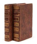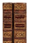 Michel de MONTAIGNE. Essais. Livre premier & second. 2 volumes in-8, basane marbrée, dos à 5 nerfs orné (Reliure du XVIIe siècle)), boîte moderne de chagrin noir. Brunet, III-1835 // Cioranescu, 15279 // De Backer, 448 // Le Petit, 99 // Sayce, 1 // Tchemerzine-Scheler, IV-870. I. (4f.)-496 / [ ]4, A-Z8, Aa-Hh8 // II. (2f.)-653 (marquées 650)-1f. / [ ]2, AAa8-ZZz8, AAaa8-SSss8 // 94 x 156 mm. Édition originale très rare et recherchée des deux premiers livres des Essais de Montaigne. On ne présente pas Michel Eyquem de Montaigne tant il s’impose dans la littérature du XVIe siècle et tant son ouvrage principal, ses Essais, reste comme l’un des chefs-d’œuvre de la pensée humaine. Rappelons seulement qu’il est né en 1533, dans le château de sa famille en Périgord. Il apprit le latin avant de connaître le français, puis le grec et, fort d’une solide érudition, fit ses études de droit à Bordeaux et fut pourvu d’une charge de conseiller au Parlement de Bordeaux. Il fit à cette occasion la connaissance de La Boétie pour lequel il eut une de ces amitiés indescriptibles dont les grandes âmes sont seules capables (Larousse). Montaigne quitta de bonne heure les emplois publics, fut élu maire de Bordeaux et représenta avec éclat ses compatriotes aux États de Blois (1557). Après le décès de son père, il se réfugia dans son château où il entreprit la rédaction de ses Essais. Montaigne y puise la force du doute, un scepticisme qui, à contre-courant du cloisonnement politique et religieux de son temps, le pousse à risquer la tolérance (En français dans le texte). Il parcourut ensuite la France, la Suisse, l’Allemagne et l’Italie, en observateur et en philosophe, revint en France et se livra tout entier à l’étude et à la philosophie. Il mourut d’une esquinancie, plus simplement appelée angine, en 1592. Les Essais contiennent trois livres dont les deux premiers parurent en 1580 dans l’édition que nous présentons. La pagination est très fantaisiste. Nous avons comparé notre exemplaire page à page avec celui de la BnF et celui de la Bodleian Library d’Oxford décrit par Sayce et avons constaté des différences dans la pagination du tome II, sans que le texte ait été modifié: cahier QQq pour la BnF et cahier HHhh pour la Bodleian. Ainsi que le note Sayce, il n’existe sans doute pas deux exemplaires parfaitement identiques. D’autre part, ce dernier a relevé des états différents pour les titres et l’errata. Notre exemplaire est du second état. Enfin, notre exemplaire comporte des remarques de premier et second tirages dans le texte. Quelques passages ont été soulignés à l’encre. L’exemplaire est très beau malgré des petites taches et pâles mouillures marginales à plusieurs feuillets du tome II. Provenance: F. Estienne (ex-libris manuscrit en partie effacé sur le titre et sur le feuillet de garde du second volume).