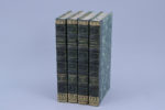 Très fines reliures romantiques en 1/2 veau vert bouteille ; dos à faux nerfs soulignés d'un fer à filets frappé à froid ; dans les entre-nerfs, large fer à décor de palmes frappé à froid ; décor à l'or en tête et en queue ; titres et tomaison frappés directement sur le 2ème et le 5ème caisson.