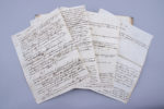 - 8 pages manuscrites grand in-4° d’un compagnon d’armes à qui l’auteur demande une relecture de ses Notes Historique.. Sobrement appelées « Notes », ces 8 pages apportent des contributions et des développements très précieux aux Notes Historiques sur la bataille de Tudella, sur le second siège de Saragosse, etc…. L’auteur de ces « Notes », qui –contrairement à l’auteur des Notes Historiques parle parfois à la première personne- semble avoir appartenu au même régiment, dans un autre bataillon, au poste de tambour, avant que d’être rattaché à l’armée de Catalogne en août 1811.