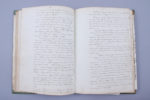 2 manuscrits en 1 volume in 4°, ½ vélin vert du temps. — Ecriture fine et serrée, régulière et pratiquement sans ratures. — De 32 à 38 lignes par page. — Quelques corrections et ajouts dans les marges.