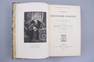 PASQUIER, Etienne Denis (1767-1862). — Mémoires du Chancelier Pasquier publiés par M. le Duc d'Audiffret-Pasquier — Paris, Plon. — 1894. — 6 volumes grand in-8, 1/2 chagrin du temps, dos sans nerf orné de fers aux croisillons.