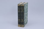 Très fines reliures romantiques en 1/2 veau vert bouteille ; dos à 5 faux nerfs soulignés d'un fer à filets frappé à froid ; dans les entre-nerfs, large fer à décor de palmes frappé à froid ; décor à l'or en tête et en queue ; titres et tomaisons frappés directement sur le 2ème et le 5ème caisson.