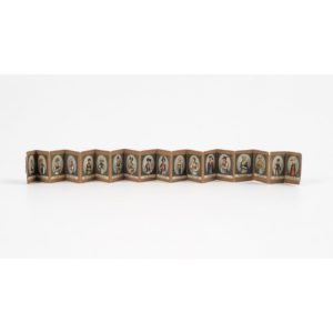 MINUSCULE. - Petits souvenirs de la Suisse. Vers 1820. Charmant album 16 x 26 mm, leporello contenant 20 petits portraits gravés féminins en couleurs, caractéristiques des régions suisses, sous chemise maroquin rouge ornée de l'époque, et dans...