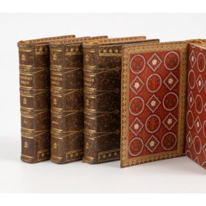 PAROISSIEN ROMAIN. Paris, Lille, Desclée, 1902. 4 vol. In-24, veau tacheté, roulette dorée de trèfles, dos à nerfs ornés, tranches dorées, sous étui à compartiments (frotté). Ex-dono "Souvenir de Monsieur l'abbé Berty, directeur du Petit...