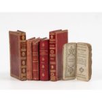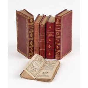 - Annuaire ou calendrier du département de Lot-et-Garonne pour 1819. Agen, Prosper Nobel, 1819. In-24, 65 x 120 mm, maroquin à long grain rouge orné de l'ép. - AGEN. - Annuaire ou calendrier du département de Lot-et-Garonne pour 1822. Agen, Prosper Nobel, 1822. In-24, 65 x 120 mm, maroquin à long grain rouge orné de l'ép. - LIÈGE. - Almanach supputé sur le méridien de Liège par Maître Laensbergh. Liège, Duvivier-Sterpin, 1866. In-24, basane rouge ornée de l'ép. Curieux calendrier des bergers in fine, illustré de nombreux bois et symboles gravés. - LIÈGE. - Almanach supputé sur le méridien de Liège par Maître Laensbergh. Liège, Duvivier-Sterpin, 1867. In-24, basane rouge ornée de l'ép. Curieux calendrier des bergers in fine, illustré de nombreux bois et symboles gravés. - TOURCOING. - Étrennes tourquennoises ou Recueil de chansons facétieuses et plaisantes sur les Tourquennois. Tourcoing, Lille, Vanacker, (1879). 10 parties en un fort vol. in-32, 60 x 100 mm, demi-mar. rouge de l'ép. Recueil de chansons avec musique notée. Bois gravés in-texte. Rare.