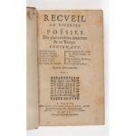 dos à nerfs orné de même, dentelle intérieure, tranches dorées (E. Thomas). Nouvelle édition de cette célèbre anthologie poétique, réunie par Jean Conart à partir de 1651. Rousseurs. Relié à la suite : Recueil de diverses pièces choisies, traduites ne français (...) par M. Nicole. Paris, Charles de Sercy, 1656. (5) ff., 68 pp. Petites taches à la reliure. Bibliographie : Ex-libris Am. Berton.