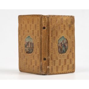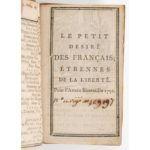 RELIURE À MÉDAILLONS PEINTS. - Petit (Le) Désiré des Français ; Étrennes de la liberté. Paris, Langlois, 1792. In-24, 54 x 95 mm, cartonnage fauve orné de bandes dorées, médaillons au centre ornés de petites peintures (22 x 30 mm) :...