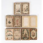 RELIURE DÉCOR LITHOGRAPHIÉ SUR SOIE. - Ens. de 5 vol. In-12, 75 x 115 mm, vers 1820, cartonnages romantiques et étui, dont 4 couverts de soie et 1 papier, et dont 4 en reliure ornée de lithographies en couleurs. - Les Mois. Paris, Le Fuel,...
