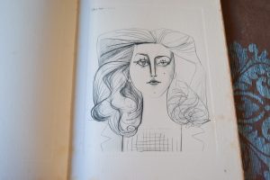 Eluard, (Paul) Picasso (Pablo) - Dessins. Paris, Les Editions Braun & Cie, 1952. in4 broché sous jaquette illustrée 11 pp., suivi de 16 dessins à pleine page. Ex. imprimé sur vélin de Lana. Piqüres sur la couverture et rousseurs éparses.