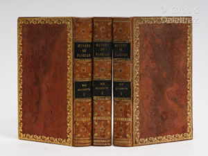 PREMIERE EDITION DE L' "ADAPTATION" DE FLORIAN CERVANTES / FLORIAN. DON QUICHOTTE DE LA MANCHE. Paris, De l'imprimerie de P. Didot l'aîné, chez Deterville, libraire, [1799]. Trois tomes en trois volumes in-8, plein veau porphyre, dos lisses...