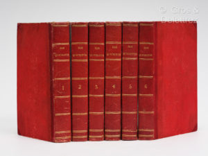 ILLUSTRATIONS DE DEVERIA [CERVANTES]. HISTOIRE DE L'ADMIRABLE DON QUICHOTTE DE LA MANCHE. Paris, Delongchamps, 1825. Six tomes en six volumes in-8 (portrait, XL, 425 pp // frontisîce, 451 pp // frontispice, 443 pp // frontispice, 460 pp //...