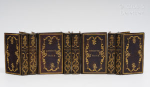 «EDITION MIGNONNE» [CERVANTES]. HISTOIRE DE DON QUICHOTTE DE LA MANCHE. Paris, Lugan, 1826-1827. Huit volumes in-16, (380 pp // 386 pp // 387 pp // 403 pp // 446 pp // 450 pp // 455 pp // 443 pp et 15 planches h. -t. ), plein chagrin maroquiné...
