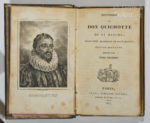 olive, plats et dos décorés à la rocaille, ils sont personnalisés au nom d’ "Annette Maus" (Reliures de l'époque). Bel exemplaire en dépit de quelques rousseurs sur les planches. Reprise de la traduction de Filleau de Saint-Martin. Ici aussi le nom de l'auteur a disparu ! «Edition Mignonne", illustrée de quinze planches, qui a dû probablement servir de cadeau pour Annette Maus (?). Palau, 52784 ; Rius, 531 : ne signale que 11 dessins. "Es muy linda esta pequeña edicion bien impressa". Henrich, 311 : lui aussi ne signale que 11 dessins par Tassaert, Chasselat et Denis ; le portrait de Cervantes est une copie de Devéria gravée par Legrand.