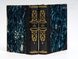 FLORIAN. DON QUICHOTTE. Paris, Victor Lecou, 1845. Deux tomes en deux volumes grand in-12, demi-maroquin à coins bleu nuit, dos lisses ornés à la rocaille, dates en pied, tranches jaspées. Front. 232 pp. // front. 219 pp. Réédition romantique...