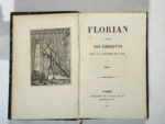 de la traduction de Florian parue en 1799. Cette édition est illustrée de 16 gravures sur acier de Tony Johannot. Quelques piqûres sur les planches. Curieusement le nom du traducteur se substitue à celui de l’auteur sur le feuillet de titre et sur la pièce de titre. Peut-être parce que Florian a revisité le texte avec «la hardiesse d’avoir abrégé un livre que j’admire », comme il l’avoue dans sa préface. Ex-libris du Dr Drouhet La même année, 1845, parurent aussi des traductions de Viardot, de Lejeune, de Filleau de Saint-Martin et des traductions comparées, signes d’un intérêt permanent pour l’ouvrage. Palau, 52810 ; Rius ne la signale pas. Très bon exemplaire.