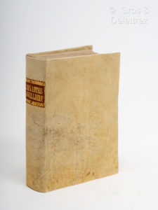 ad ogni sotte di persona occasione, d'apprendere e precetti Politici, e documeni Morali, e concetti Scientifichi, e frttuosi. In Venetia, Presso il Barezzi, 1626. Un volume in-8 (8 ff, 720 pp) placé dans un velin ancien souple, pièce de titre moderne en veau brun (Reliure italienne). Rarissime traduction italienne en édition originale donnée par Guglielmo Alessandro de Novilieri, Clavelli. Parue peu après l'édition espagnole (1614) cette traduction souligne et la notoriété européenne de Cervantes et la rapidité avec laquelle les publications se diffusaient alors. Palau, 53548 ; Graesse II, p. 108.