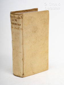 CERVANTES SAAVEDRA (Miguel de). NOUVELLES... Traduction Nouvelle augmentée de plusieurs Histoires retouchée dans cette Edition et enrichie de Figures. Paris, Pierre Witte, 1713. Deux tomes en un volume in-12, plein vélin rigide du temps. Bel...