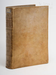 éditeur, 1745. Manuscrit in-4 de 299 ff. Très bonne calligraphie à l'encre brune du milieu du XVIIIème siècle. (Vélin rigide de l'époque). Rarissime copie datée de 1745 de la traduction italienne faite par Gugliemo Alessandro di Novilieri CLAVELLI en 1626. Titre inscrit dans un cartouche ornemental et texte encadré d'un double trait. Comparée sur la première édition vénitienne parue chez Barezzi. Le besoin de copier cette traduction au XVIIIème s'est fait sentir car il n'existait aucune édition italienne entre 1629 et 1819 ! Ex-libris de John Grover "Le Roy, la Loy, la Foy". Ex-libris de la Biblioteka de Chile de F. i K. Newman, Valparaiso... C’est un manuscrit voyageur !