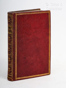 finement orné, triple filet doré sur les plats, coupes guillochées, tranches dorées. (Reliure de l’époque). Bel exemplaire. Ex-libris René Choppin. Enfin Galatée parut en 1783. On lut beaucoup ce simple conte, qui relevait de quelques fadeurs et des réminiscences d’Honoré d’Urfé par un coloris plus vif et des scènes véritablement touchantes. Première édition imprimée par Didot et illustrée de sept gravures de B. Gayand. Palau, 51955.