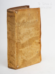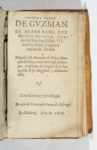 de lacets. Bon exemplaire un peu gauchi. Rarissime édition madrilène parue à peine un an après la première (1599 chez le même éditeur). Il s'agit probablement de la seconde. Salva ne la possédait pas. Palau, 6675. Comme pour le Quichotte cette première partie a été suivie d'une seconde partie apocryphe de Mateo Lujan de Sayavedra. C'est l'autobiographie d'un sacré coquin qui raconte sa propre vie. A la mort de son père il s'en va de par le monde. Il apprend à voler et finit par entrer dans l'honorable société des voleurs et des tricheurs... et mène une vie corrompue et cynique. Dans ce récit, selon un procédé mis à la mode par Boiardo et l'Arioste, l'auteur intercale trois nouvelles et emprunte des anecdotes aux récits populaires et à l'observation de la vie réelle. Aleman décrit les aspects les plus crus de la vie. Le cadre de son roman est fait d'abjection et de misère en opposition aux fictions pastorales et chevaleresques. L'auteur a une amère complaisance pour la vie de la racaille. «Il montre ainsi sa vision négative du monde, dans laquelle le mépris du stoïcien et le désespoir du juif (Aléman était d'ascendance israélite) se fondent en un christianisme que n'éclaire aucune confiance en l'homme. » (Laffont-Bompiani).