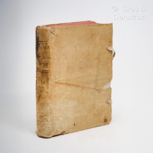 de S. Sebastiao da Mouraria, natural da cidade de Elvas. Dedicados ao Doctor D. Rodrigo d'Acunha, Inquisidor Apostolico de Sancto Officio de Lisboa. Per Domingos Fernandez seu Livreyro. Em Lisboa, Pedro Crasbeeck, 1613. Un volume, grand in-8 (6 ff, 308 folios), plein velin souple de l'époque, traces de lacets, dos en partie sali, restauration de velin sur le second plat. Petit travail de ver dans les marges inférieures des premiers feuillets. Le texte est imprimé en italique et les commentaires en roman. Rarissime septième édition (la première date 1572) de ce chef-d’œuvre de la littérature portugaise. C'est la première comportant les commentaires de Manoel Correa, ami intime de Camoens. Cette édition posthume a été éditée par Pedro de Mariz qui a écrit l'introduction "Ao Estudioso da lição Poetica". Il a rédigé la première biographie de Camoens qui peut être considérée comme une des plus fiables. Il s'agit d'une épopée qui a pour sujet l'expédition de Vasco de Gama qui, après plusieurs échecs, a enfin pu atteindre l’Orient par la mer. Camoens en a profité pour "greffer" sur cette relation de voyage les hauts faits de l'histoire du Portugal. Le récit du voyage et les narrations historiques suivent de très près les sources des chroniqueurs, mais, désirant faireœuvrepoétique, l'auteur a transposé les faits en recourant à la mythologie ! D'un tempérament lyrique, bucolique et élégiaque, Camoens réalise ainsi un modèle d'art baroque auquel Cervantes se réfère plusieurs fois (cf IIème partie, & LVIII). D. Manuel III, 19 ; Brunet, I516.